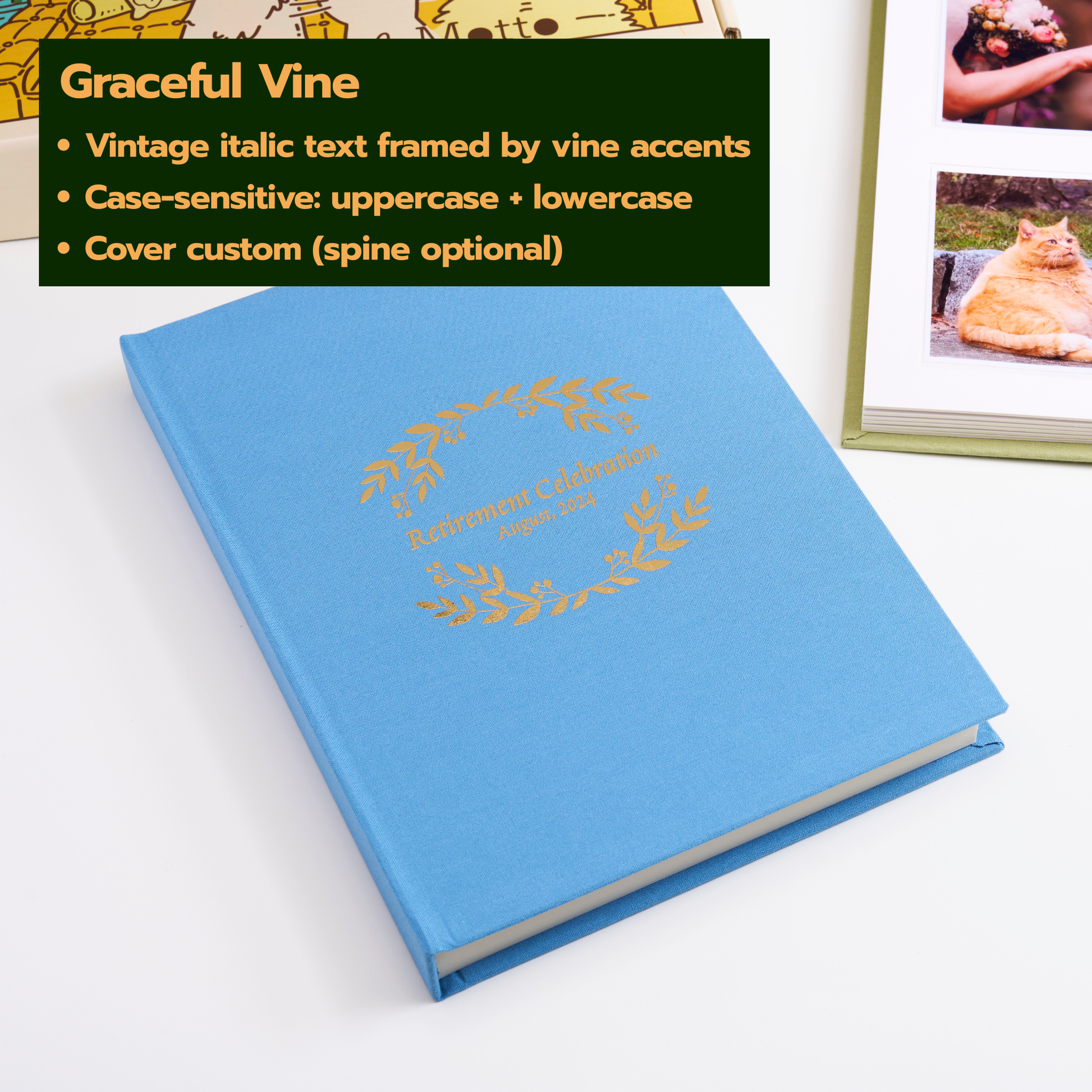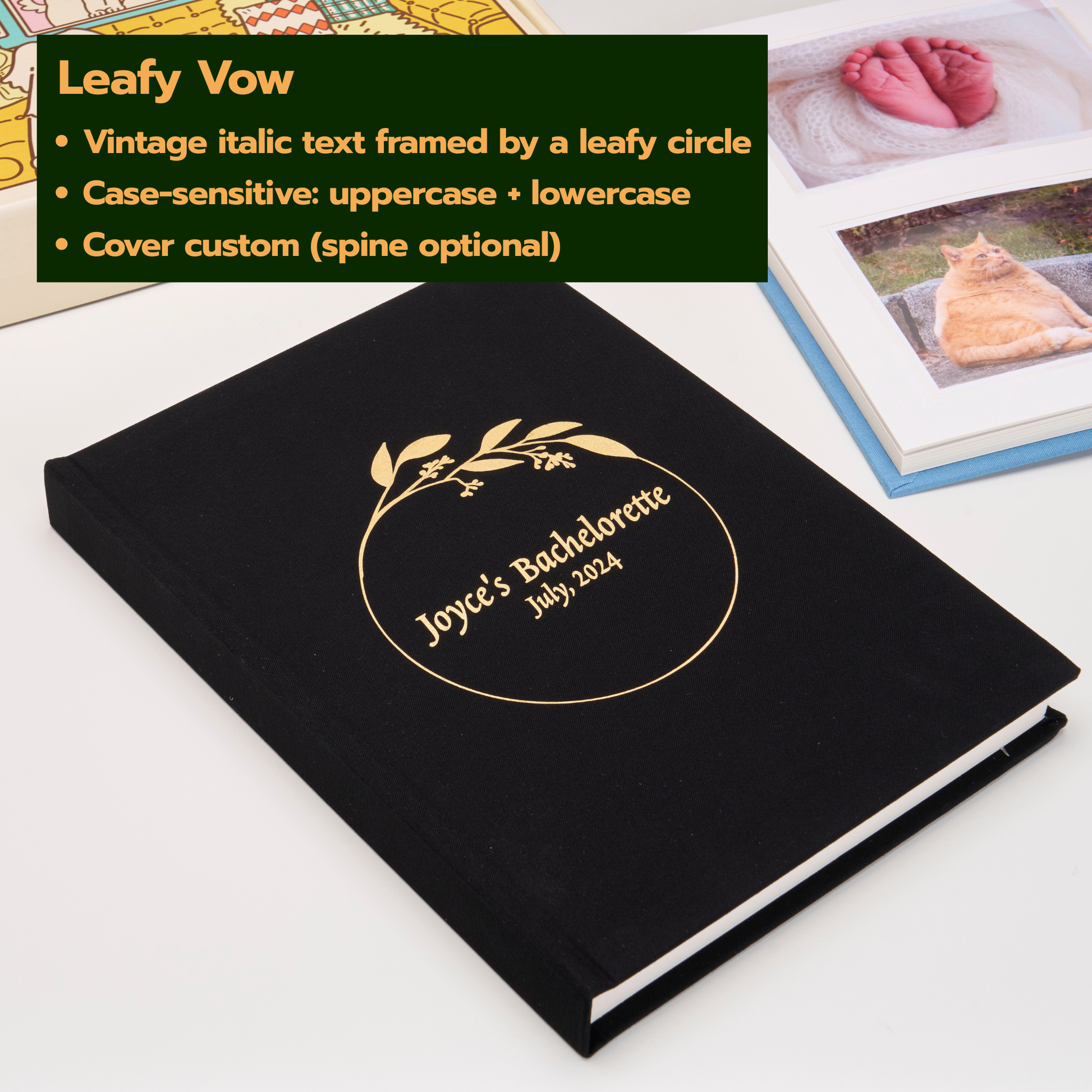 Personalized Linen Hardcover Photo Album For 4x6 inch Photos (48 pockets / writable cardstock)