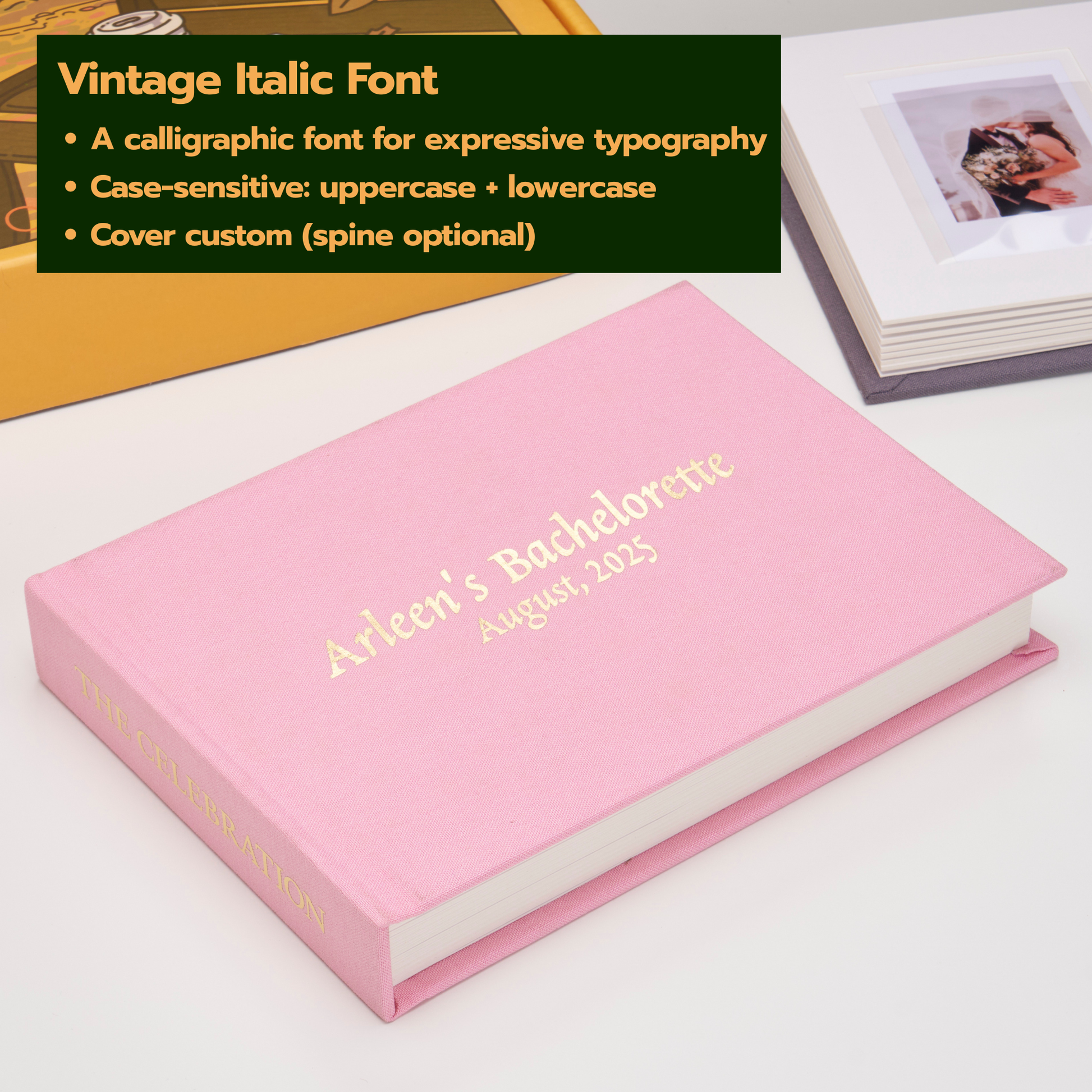 Personalized Linen Hardcover Photo Album For Instax Mini (48 pockets / Writable Cardstock)