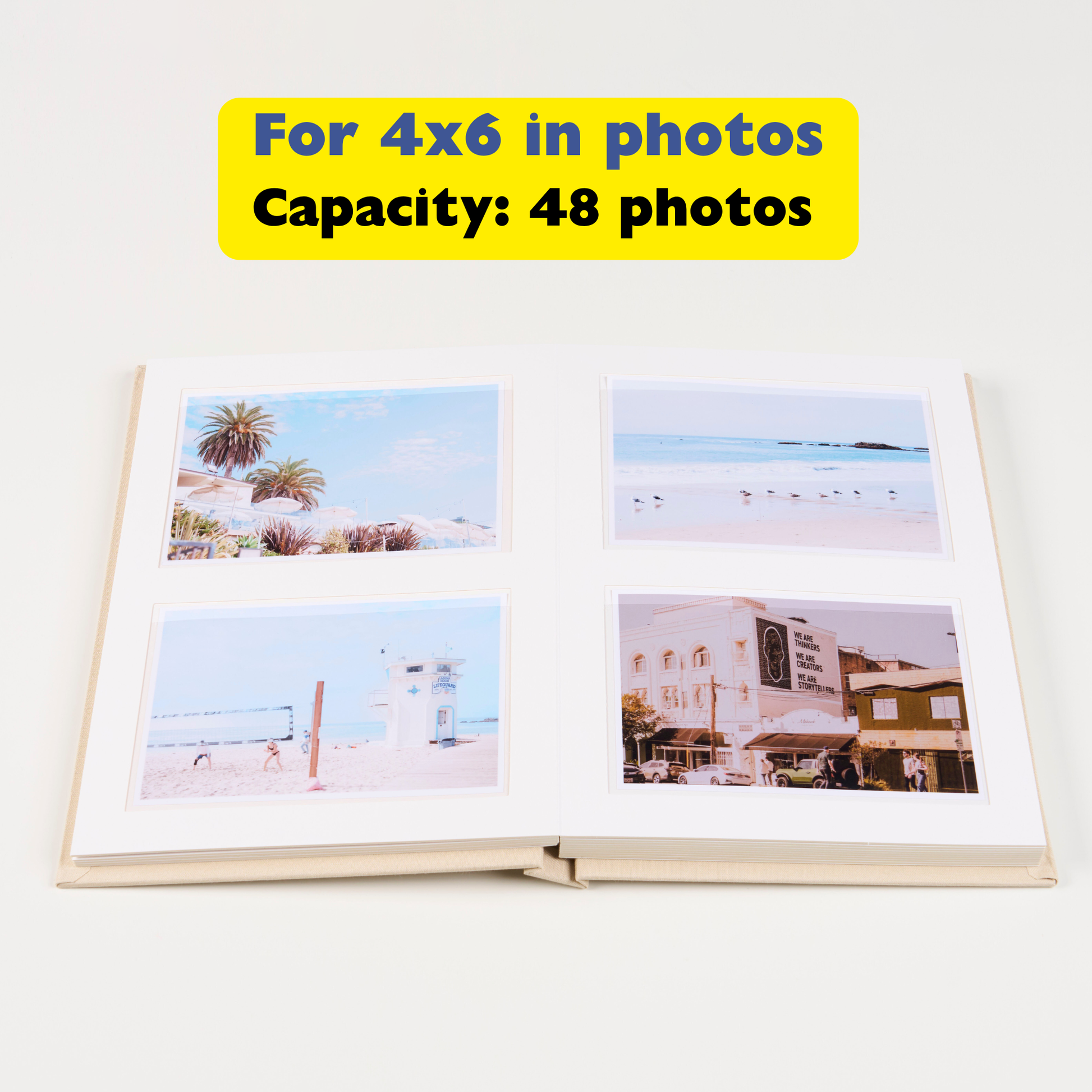 Personalized Linen Hardcover Photo Album For 4x6 inch Photos (48 pockets / writable cardstock)
