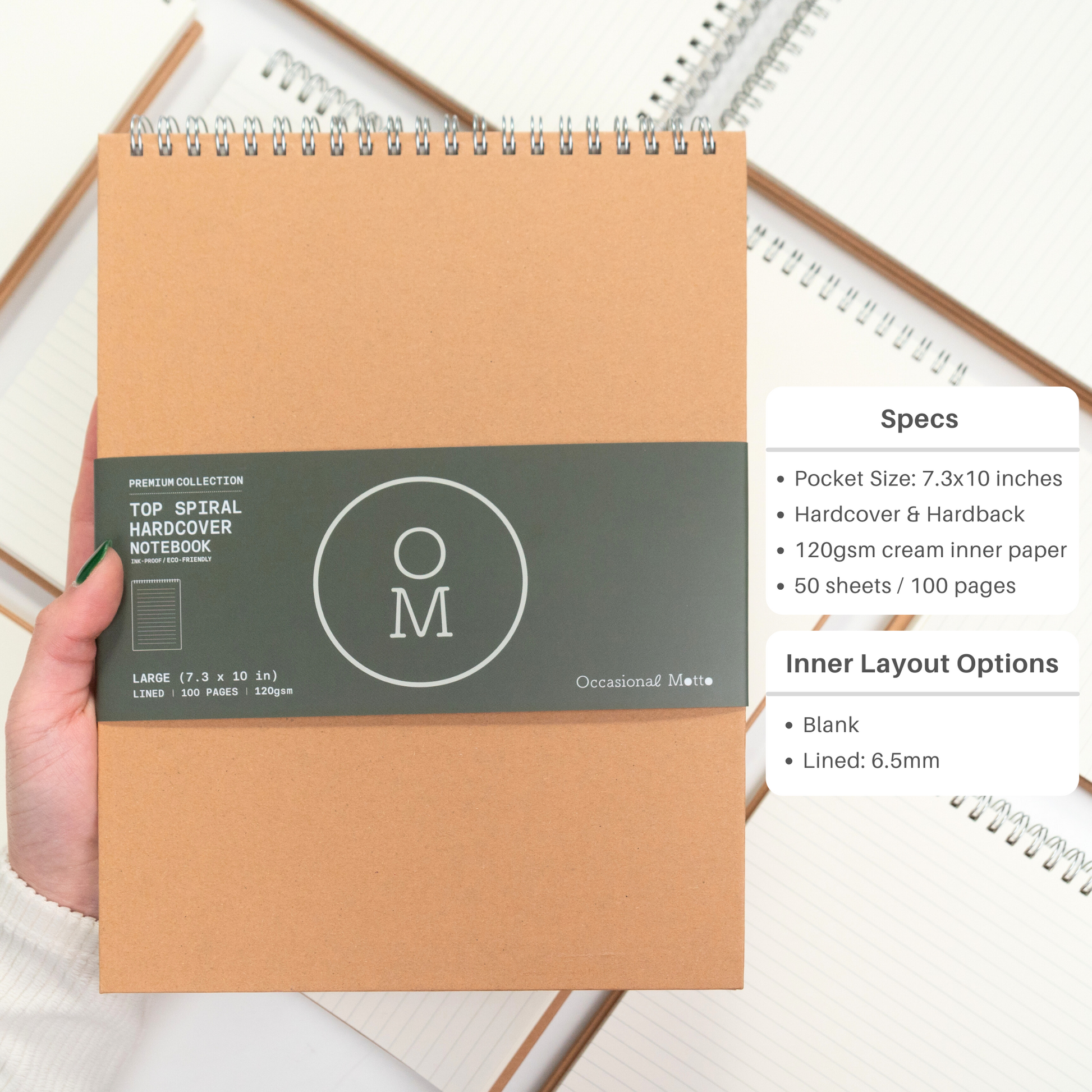 Hardcover Top Spiral Steno Kraft Notebooks (120gsm layout paper)